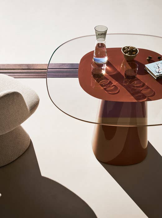 このコレクションは、Allure O’テーブルの独特なデザインを思わせるトップとベースが象徴的な形状となっており、素材の洗練さ、色彩の美しさ、透明感の遊びが調和したフレッシュでダイナミック、そしてトレンディなデザインを誇ります。