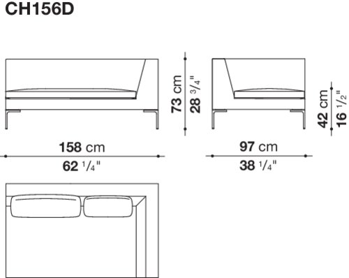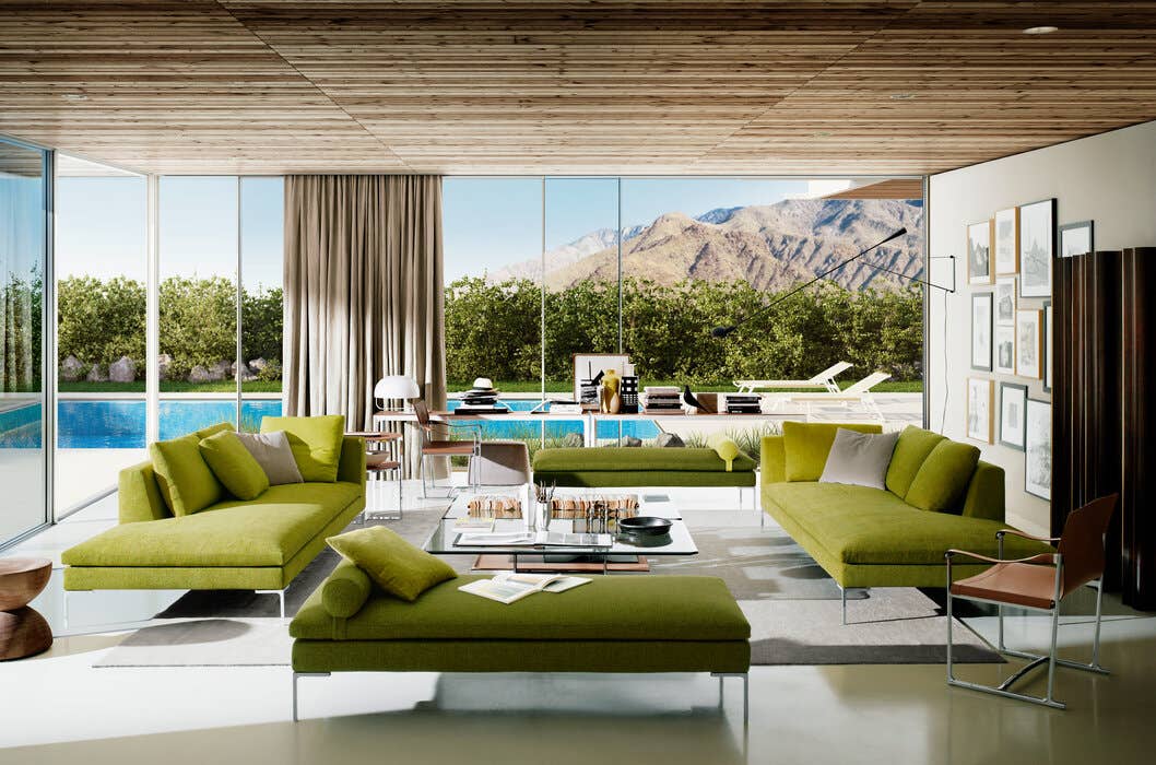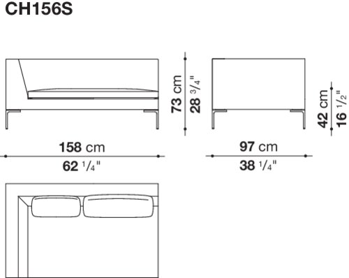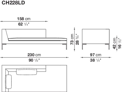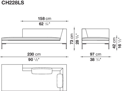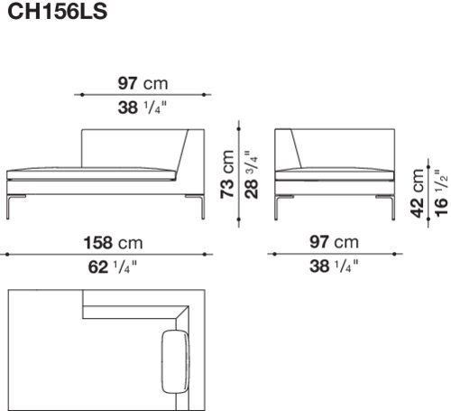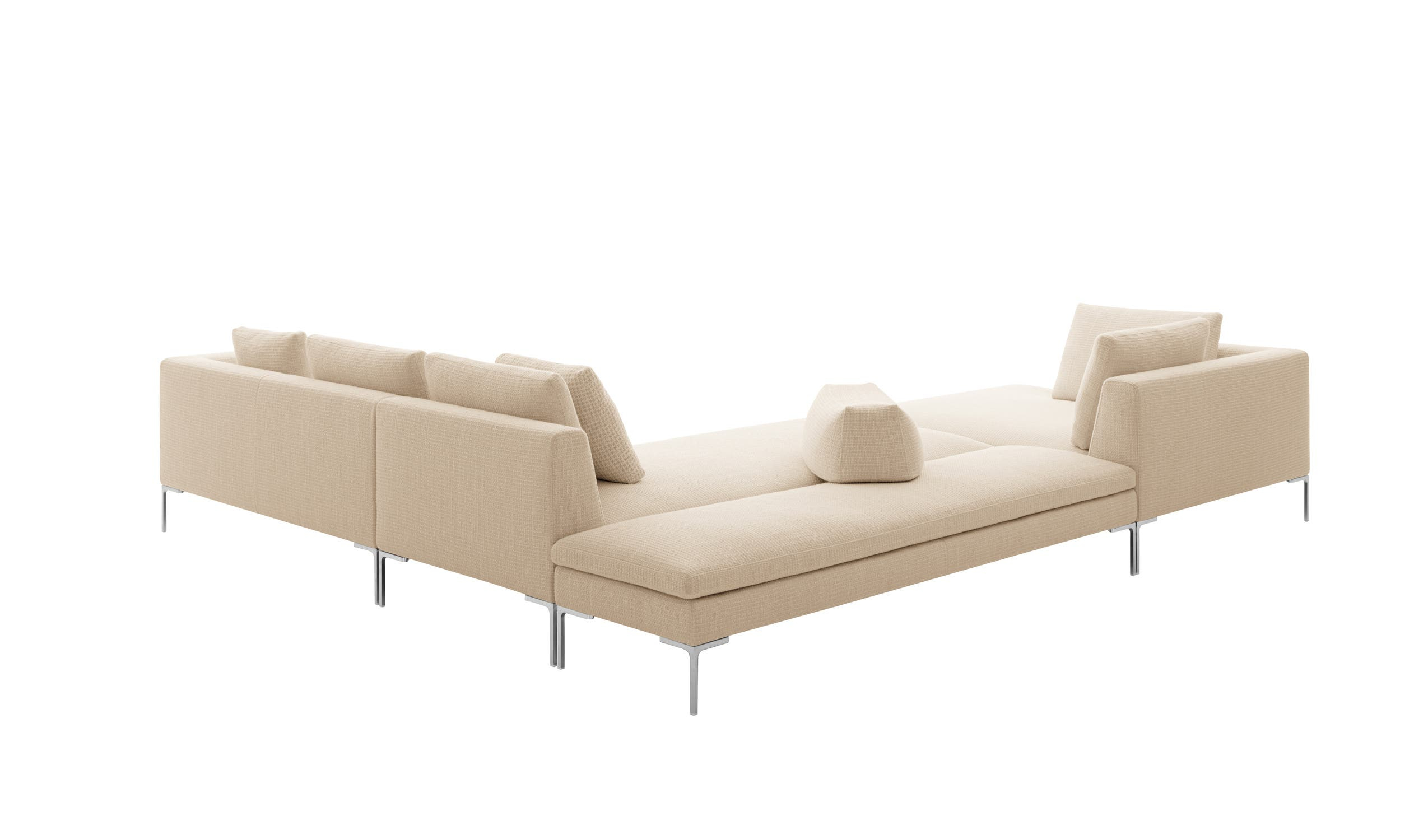 Charles<チャールズ>は、様々なタイプのエレメントを組み合わせることにより、たくさんのコンポジションを作り出すことができます。直線的なユニットやコーナーユニット、またはシェーズ・ロングエレメントをご利用いただけば、お部屋の真ん中に置くのに最適な抜け感を演出していただけます。シングルシート・クッションやバッククッションのアレンジも楽しんで。ブライトブラッシュ仕上げ、ブロンズ色のニッケル塗装またはブラッククローム仕上げが施された脚部は、その飾り気のないデザインが軽快なイメージを演出しています。より奥行きの深いチャールズ・ラージの広い座面に寝そべって身を任せれば、極上の心地よさを実感できるでしょう。