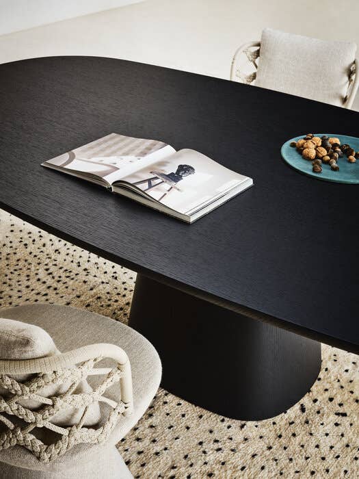 モニカ・アルマーニは、このチェアを改良するために、カントゥーを拠点とし、伝統的な織物技術を現代的に蘇らせ、家具分野に応用することを専門とするデザインスタジオ、unPIZZO(ウンピッツォ)とコラボレーションしました。アルミニウムの背もたれの内部構造は、4色から選べるポリプロピレンのリボンできれいに包まれており、レンズ状の底面を持つ円錐形の脚の上に収まっています。