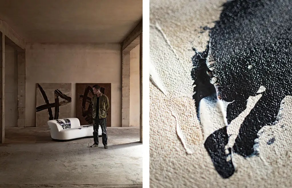 ユトレヒト(オランダ)に生まれ、現在はパルマ・デ・マヨルカ(スペイン)在住。 彼が(今回のプロジェクトに)選ばれた理由は、その荒々しくも洗練されたスタイルにあります。 それは、筆致の原初的なシンプルさと、日本の伝統芸術である書道を想起させる洗練されたフォルムとを並置させることで、見事な調和を生み出します。
