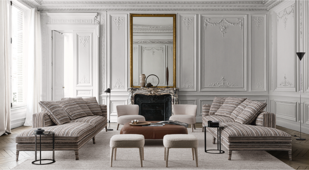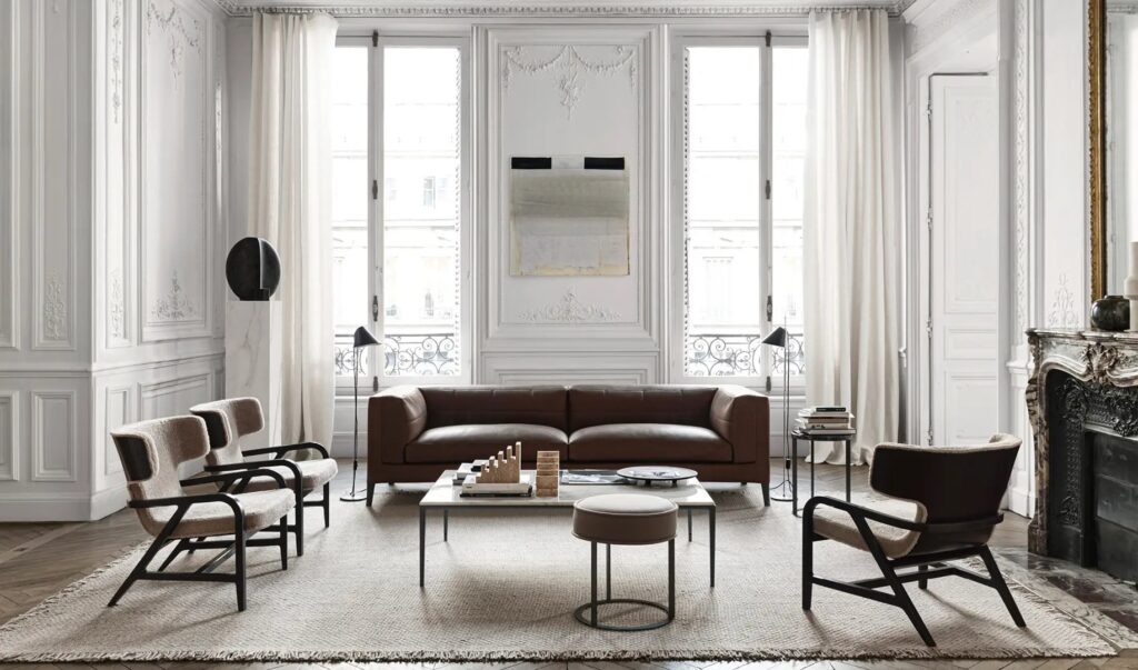 テーブルやソファには新しいサイズが追加され、張地やステッチモチーフも一新。アップホルスター技術の改良により、より洗練された仕上がりへと進化しています。さらに、天然木や金属仕上げのコーディネート、エクスクルーシブなレザーやファブリック、新しいカラーとテクスチャーなど、多彩な素材を取り入れることでコレクション全体がより豊かに広がりました。