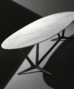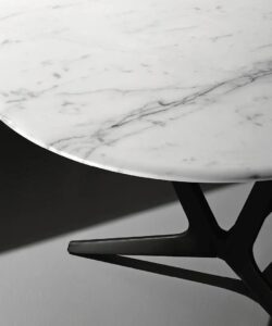 ファッションやジュエリー、コスメティックといった分野、そして小〜中サイズの静物撮影における彼女の経験が、家具やインテリアアイテムにも“彫刻的(プラスティック)”なアプローチをもたらしました。
